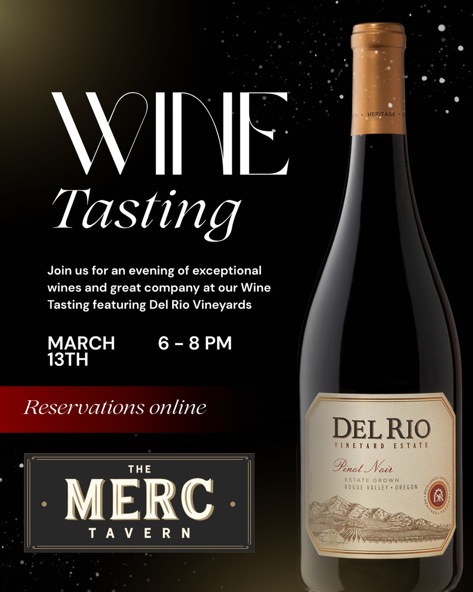 Join us for an evening of exceptional wines and great company at our Wine Tasting featuring Del Rio Vineyards on Friday, March 13th from 6–8pm.